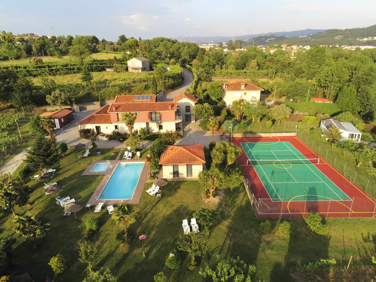 Descubra a tranquilidade da nossa quinta de turismo rural, com 4 casas, 2 suítes e 3 bungalows acolhedoras, inseridas na natureza. Desfrute de um amplo espaço de lazer perfeito para descansar ou conviver em família. Um refúgio no campo, onde o tempo abranda e a serenidade impera.